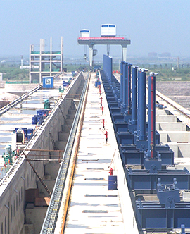 公司專業(yè)生產(chǎn)的各類平面、弧型閘門,各類卷揚、門式、移動式啟閉機,各類清污機、攔污柵、升船機、壓力鋼管、錐形閥等超大型、大型水工金屬結(jié)構件和各類起重機遠銷全國26個省、市、自治區(qū),并出口到16個國家和地區(qū),廣泛應用于全國重點工程建設,如長江三峽永久性船閘工程、淮河蚌埠閘擴建工程、浙江溫州珊溪水利樞紐工程、四川岷江紫坪鋪水利樞紐工程、浙江省分水江水利樞紐工程、中國河口第一大閘曹娥江攔河大閘和港口、船舶制造企業(yè)等。